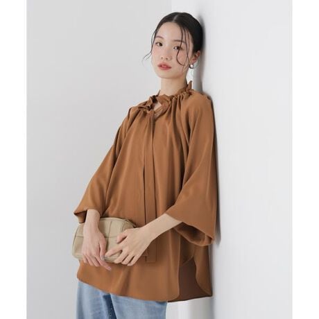 フリルカラーが華やかな印象のボータイブラウス。衿元のリボンを結んだり、衿元を開けて異なる印象で着こなしのアレンジを楽しめるデザイン。上からベストやジャケットなどを重ねてレイヤードコーデや、デニムなどのカジュアルボトムとのスタイリングもおすすめです。