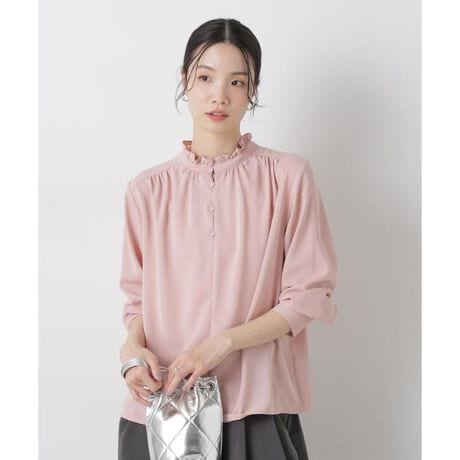 ・定番人気の大人フェミニンなスタンドカラーギャザーブラウス