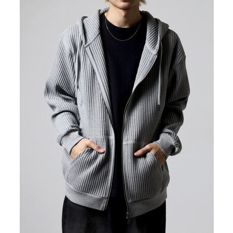 秋、冬、春とロングシーズで人気のあるビッグワッフル素材を使用したフルジップパーカです。ヘビーウェイトなワッフルでアウターとしても使えるアイテムです。ワッフル素材特有の型崩れを抑えるため、綿80%/ポリエステル20%の混紡糸を使用しています。スウェットのようにラフに着たり、綿ニットのようにシャツとのレイヤードなど、カジュアルからきれいめまで着こなしの幅が広がります。