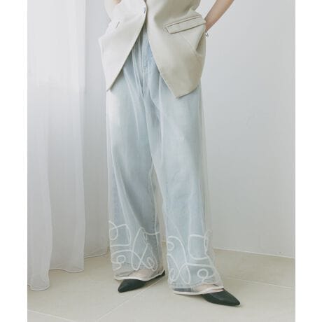 ニュアンス ウェーブ 刺繍 シアー チュール パンツ Freesia フリージア