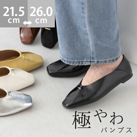 大人なタックデザインとゴールドの金具に、極やわシリーズならではのやわらかさを追求した履き心地で、美脚みせ/おしゃれ/履き心地、すべてを叶える!