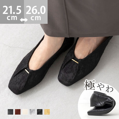 大人なタックデザインとゴールドの金具に、極やわシリーズならではのやわらかさを追求した履き心地で、美脚みせ/おしゃれ/履き心地、すべてを叶える!
