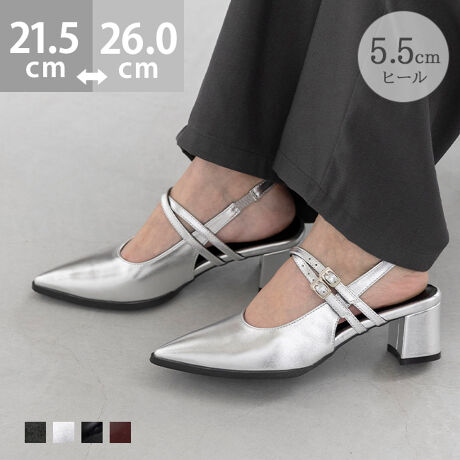 シャープなポインテッドトゥと、デザイン性の高い太めのブロックヒールを採用。デザインにこだわりながら、確かな安定感で長時間の歩行もサポート!
