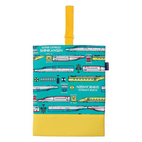 入園・入学準備品!通園、通学、遠足や普段のおでかけなどにも!男の子が大好きな電車、新幹線のドクターイエロー、こまち、はやぶさ柄!毎シーズン大人気のJRコラボシリーズです!JR東日本、JR東海、JR西日本商品化許諾済み商品です。学校、習い事、おけいこ事にも!JR新幹線電車柄の手提げデザインのシューズケース、シューズバック、シューズバッグ、靴入れ。軽くて丈夫なポリエステル素材。同じ柄で巾着(B17680、B17687)や移動ポケット(B17685)、ランチョンマット(B17891)、エプロン(B17890)、レッスンバッグ(B17683)、ナップサック(B17681)、通園バッグ(B17684)、リュック(B17682)、レイングッズ(B17892、B17893、B17894)があるので、入園、入学準備で色々なアイテムを同じ柄に揃えることも出来ます。【アイテム】雑貨 カジュアル お洒落 オシャレ かっこいい かわいい 可愛い 普段着 デイリーウェア お出かけ 子ども こども 男児 男の子 ボーイズ キッズ ベビーサイズ トドラーサイズ 幼稚園 保育園 小学校 通園 通学 小学生 遠足 旅行 2026年春夏物新作 丸高衣料 小物 エメラルドグリーン 緑色 ネイビー 紺色 鉄道 子鉄 車両 電車 電鉄 トレイン キッズフォーレ