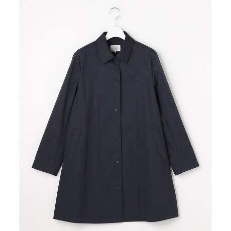 ゆとりのあるAラインシルエットの、さらっと羽織りやすいステンカラーコート。上襟に素材感の違う別布を使用し、さり気ないデザインポイントにしています。フロントには小さめで上品なドット釦を使用しており、控えめながらも洗練された印象を演出します。袖口の内側にテープをあしらい、折り返すとさりげなく覗く配色ディテールが装いに華やかさをプラス。肩幅と身幅をややゆったりとしたサイズ感にしており、インナーのボリューム感をあまり気にする事なく着用できます。釦の開閉も楽にできて気軽に羽織れる、裏地のない仕立ての軽いコートです。
