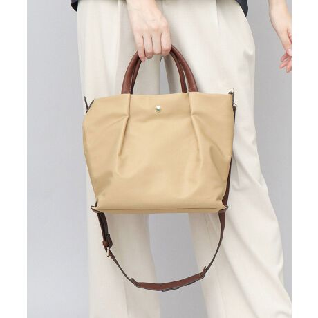 ショルダーベルトとハンドルには、手触りの良い柔らかなレザー調素材を使用。用途に合わせて使い分けができる2WAY仕様。