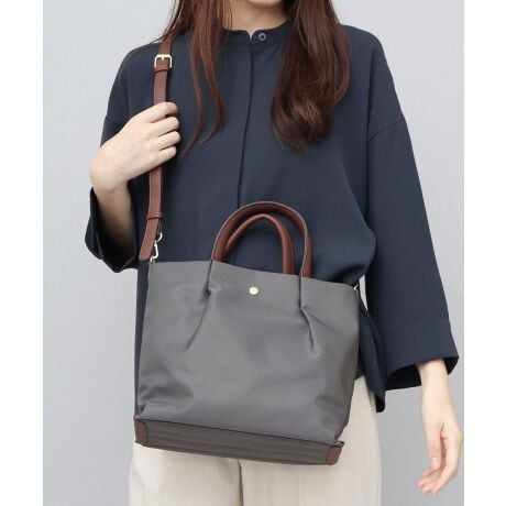 ショルダーベルトとハンドルには、手触りの良い柔らかなレザー調素材を使用。用途に合わせて使い分けができる2WAY仕様。