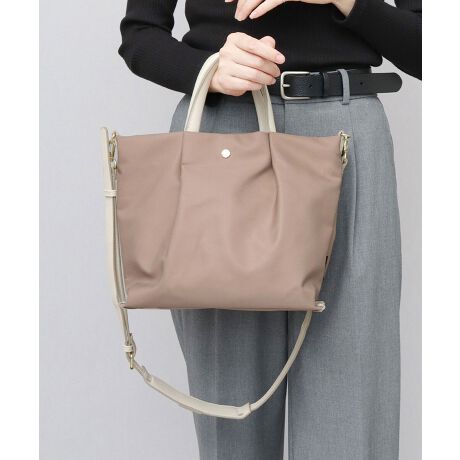 ショルダーベルトとハンドルには、手触りの良い柔らかなレザー調素材を使用。用途に合わせて使い分けができる2WAY仕様。