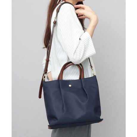 ショルダーベルトとハンドルには、手触りの良い柔らかなレザー調素材を使用。用途に合わせて使い分けができる2WAY仕様。