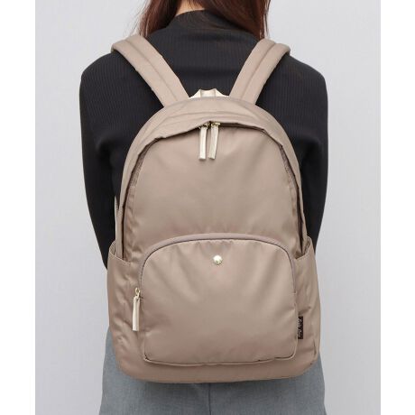 Legato Largo(レラートラルゴ)“肩楽シリーズ”の、大人可愛いデイパック。上品な光沢の生地感に、随所に施されたゴールドのパーツや手触りの良いレザー調パーツで、控えめながら華やかさのある大人な雰囲気が魅力。