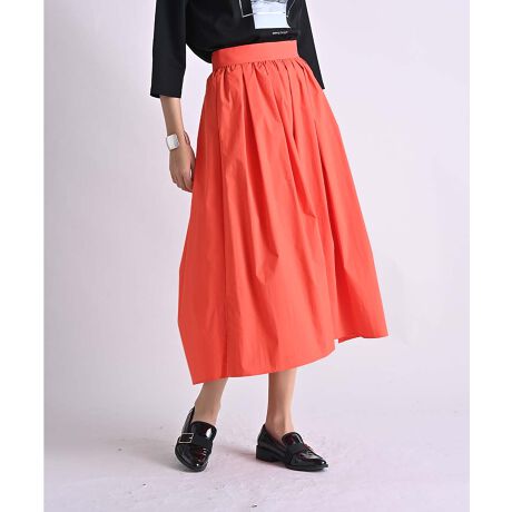 高い伸縮性を持つポリエステル系複合繊維を使用した、薄手でハリのある上質素材のタックスカート。