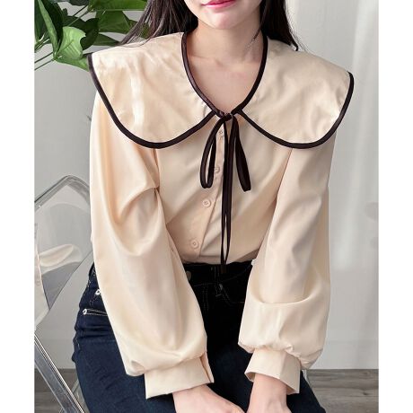セーラー風配色リボンブラウス
