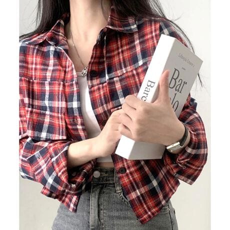 クロップド丈チェックシャツ