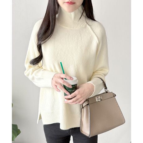 シンプルなハイネックデザインで、顔まわりをすっきりと見せてくれる一枚です。