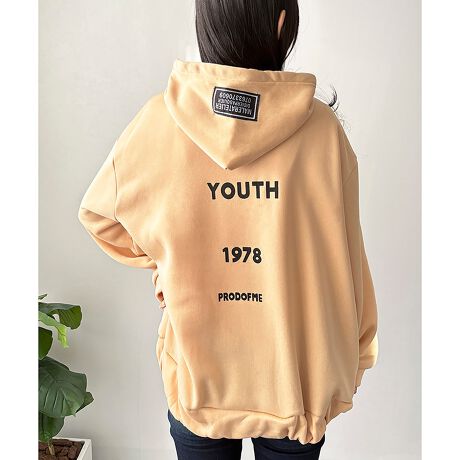 背中に入ったロゴプリントが、コーデのアクセントになるデザインです。