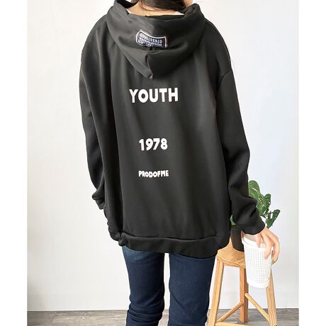 背中に入ったロゴプリントが、コーデのアクセントになるデザインです。