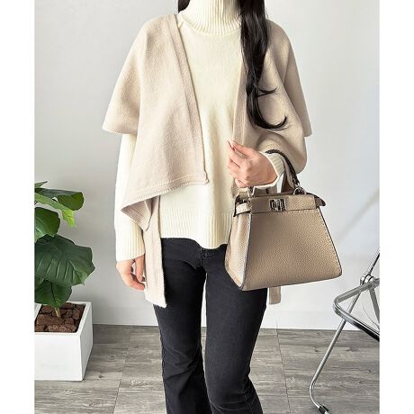ポンチョ風のゆったりとしたフォルムが、やさしい印象を与えるニットカーディガンです。