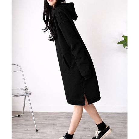 シンプルなスウェット素材にフードを添えた、抜け感のあるパーカーワンピース!