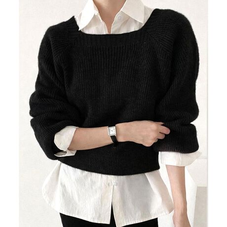デコルテをきれいに見せてくれるスクエアネックが印象的なゆるニット。