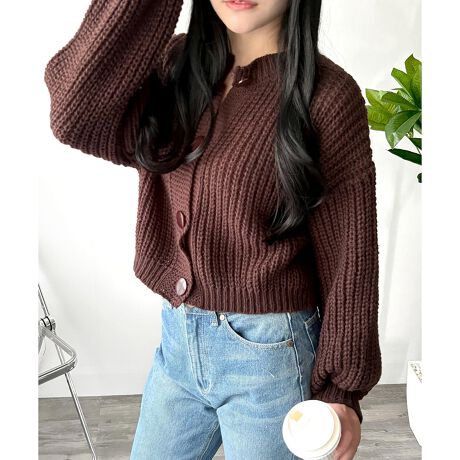ふんわりと丸みのあるバルーンスリーブが目を引くショートカーディガンです。