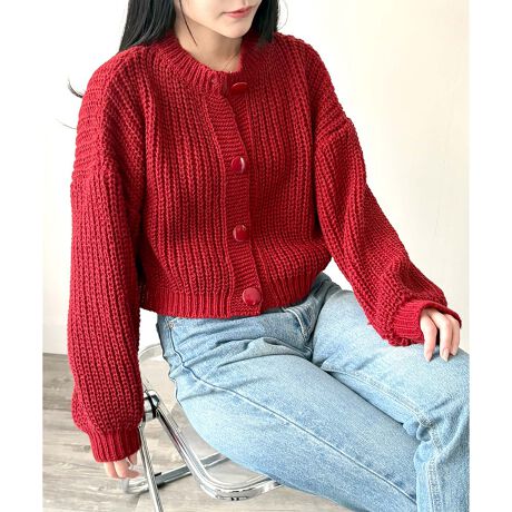 ふんわりと丸みのあるバルーンスリーブが目を引くショートカーディガンです。