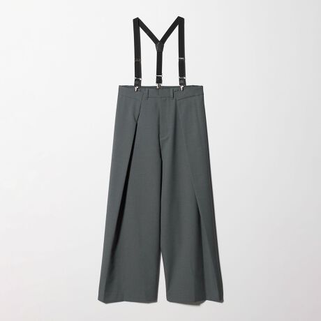 サスペンダーがついたマニッシュなワイドパンツ。