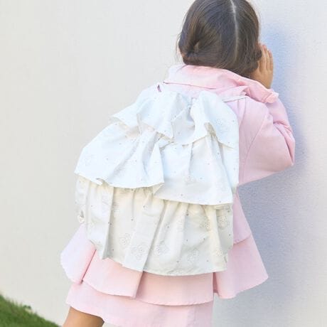 3段フリルが目を引くデザインで、女の子らしい華やかさが魅力です。