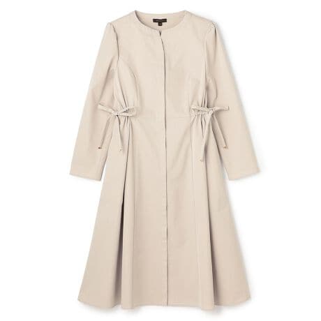 軽やかな素材感とシンプルなデザインが魅力のドレス。フロントのボタンを閉じれば上品なドレスとして、前を開ければ羽織りとしても活躍する2WAY仕様です。ウエスト部分にはさりげないリボンディテールをあしらい、シルエットを美しく引き立ててくれます。