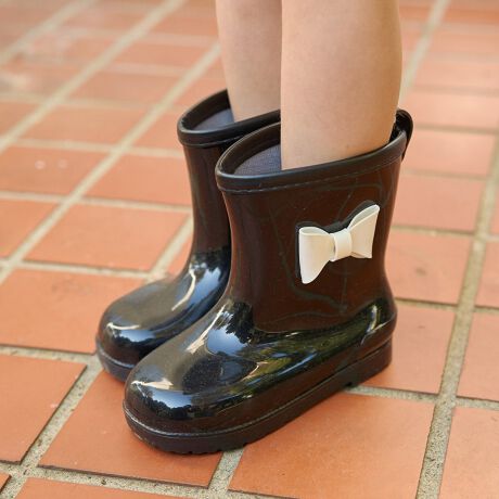 大きなリボンと縁取りのバイカラーが魅力的なレインブーツです。