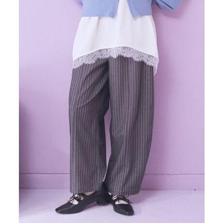 丸みシルエットで今っぽさも体型カバーも両立トレンド感のあるバルーンシルエットが、いつものコーディネートを新鮮に見せてくれる一着です。腰まわりから裾にかけて生まれる程よい丸みが、脚のラインを拾いにくく、自然に体型をカバーしてくれます。縦の切り替えを意識したデザインのため、ボリュームがありながらもすっきりとした印象に仕上がります。ウエストまわりはきちんと感があり、トップスをインしてもバランス良く着こなせるのが魅力です。ブラウスやニットと合わせれば上品に、カットソーやスウェットと合わせれば程よくカジュアルな雰囲気を楽しめます。合わせるアイテムを選ばず、デイリーからお出かけまで幅広く活躍します。旬なシルエットを取り入れながらも、長く愛用できるパンツをお探しの方におすすめです。透け感[なし]