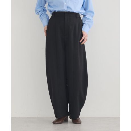 丸みシルエットで今っぽさも体型カバーも両立トレンド感のあるバルーンシルエットが、いつものコーディネートを新鮮に見せてくれる一着です。腰まわりから裾にかけて生まれる程よい丸みが、脚のラインを拾いにくく、自然に体型をカバーしてくれます。縦の切り替えを意識したデザインのため、ボリュームがありながらもすっきりとした印象に仕上がります。ウエストまわりはきちんと感があり、トップスをインしてもバランス良く着こなせるのが魅力です。ブラウスやニットと合わせれば上品に、カットソーやスウェットと合わせれば程よくカジュアルな雰囲気を楽しめます。合わせるアイテムを選ばず、デイリーからお出かけまで幅広く活躍します。旬なシルエットを取り入れながらも、長く愛用できるパンツをお探しの方におすすめです。透け感[なし]