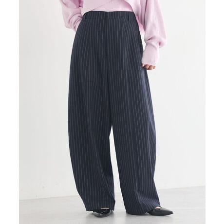 丸みシルエットで今っぽさも体型カバーも両立トレンド感のあるバルーンシルエットが、いつものコーディネートを新鮮に見せてくれる一着です。腰まわりから裾にかけて生まれる程よい丸みが、脚のラインを拾いにくく、自然に体型をカバーしてくれます。縦の切り替えを意識したデザインのため、ボリュームがありながらもすっきりとした印象に仕上がります。ウエストまわりはきちんと感があり、トップスをインしてもバランス良く着こなせるのが魅力です。ブラウスやニットと合わせれば上品に、カットソーやスウェットと合わせれば程よくカジュアルな雰囲気を楽しめます。合わせるアイテムを選ばず、デイリーからお出かけまで幅広く活躍します。旬なシルエットを取り入れながらも、長く愛用できるパンツをお探しの方におすすめです。透け感[なし]