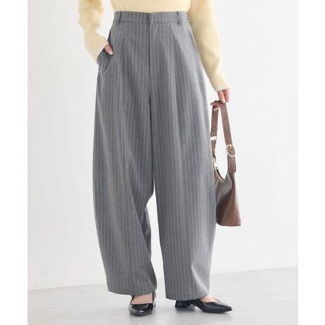 丸みシルエットで今っぽさも体型カバーも両立トレンド感のあるバルーンシルエットが、いつものコーディネートを新鮮に見せてくれる一着です。腰まわりから裾にかけて生まれる程よい丸みが、脚のラインを拾いにくく、自然に体型をカバーしてくれます。縦の切り替えを意識したデザインのため、ボリュームがありながらもすっきりとした印象に仕上がります。ウエストまわりはきちんと感があり、トップスをインしてもバランス良く着こなせるのが魅力です。ブラウスやニットと合わせれば上品に、カットソーやスウェットと合わせれば程よくカジュアルな雰囲気を楽しめます。合わせるアイテムを選ばず、デイリーからお出かけまで幅広く活躍します。旬なシルエットを取り入れながらも、長く愛用できるパンツをお探しの方におすすめです。透け感[なし]