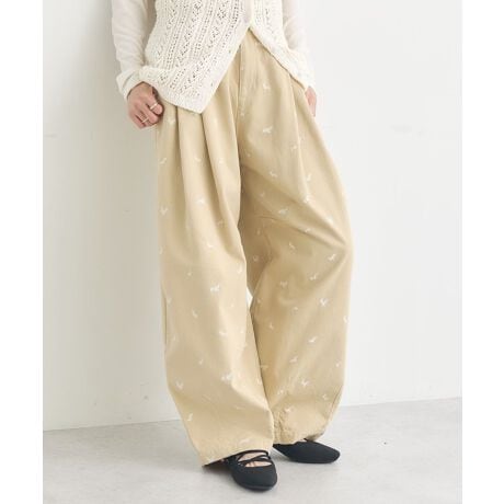さりげない刺繍が装いに優しさを添える旬パンツツイル素材のほどよいハリ感と、やわらかなカーブシルエットが特徴です。脚のラインを自然に包み込み、気になる部分をさりげなくカバーしてくれます。全体に散りばめられたフラワー刺繍は主張しすぎず、上品な華やかさを演出します。シンプルなトップスと合わせるだけで、今っぽいスタイリングが完成するのも魅力です。カジュアルにもきれいめにもなじみやすく、デイリーからお出かけまで幅広く活躍します。軽やかなはき心地で長時間の着用も快適です。季節を問わず使いやすく、ワードローブにあると着回し力の高さを実感できます。大人の装いに程よい甘さをプラスしたい方におすすめです。透け感[なし]