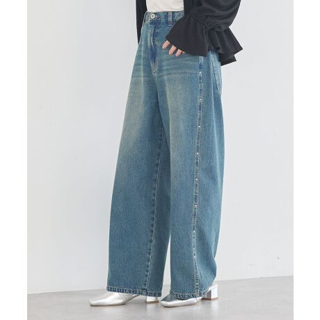 大人カジュアルに差がつくスタッズデニムベーシックなデニムに繊細なスタッズを施し、上品さと遊び心を両立したデザインです。光を受けて控えめにきらめくスタッズが、シンプルな装いのアクセントになります。程よくゆとりのあるシルエットで動きやすく、リラックス感がありながらもだらしなく見えません。腰回りから脚のラインまできれいに見せてくれるため、体型カバーにも役立ちます。カジュアルなスニーカー合わせはもちろん、パンプスやローファーを合わせれば落ち着いた印象にも仕上がります。デイリー使いからお出かけまで幅広いシーンで活躍し、着回し力の高さも魅力です。いつものデニムスタイルを格上げしたい方におすすめです。透け感[なし]