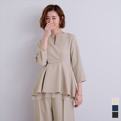ペプラムにはタックを入れ、ふんわりしたシルエットに。