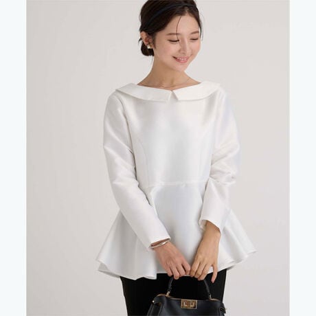 ◆DETAILウエストから広がるペプラムシルエットが、女性らしい華やかさを演出。襟は取り外し可能な2way仕様で、気分に合わせた着こなしが楽しめます。デイリーからフォーマルまで幅広いシーンで活躍します。◆FABRIC程よい厚みとハリ感のある素材を使用。立体感のあるシルエットを保ち、ペプラムデザインをより上品に引き立てます。[型番:BHXU1941]