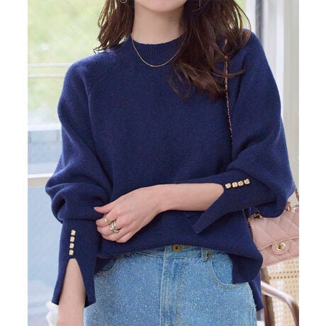 袖元の上品な立体ゴールドボタン×スリットが目を惹く、大人の上品ニット。