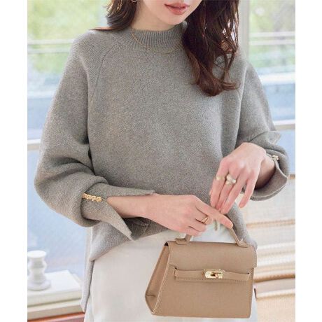 袖元の上品な立体ゴールドボタン×スリットが目を惹く、大人の上品ニット。