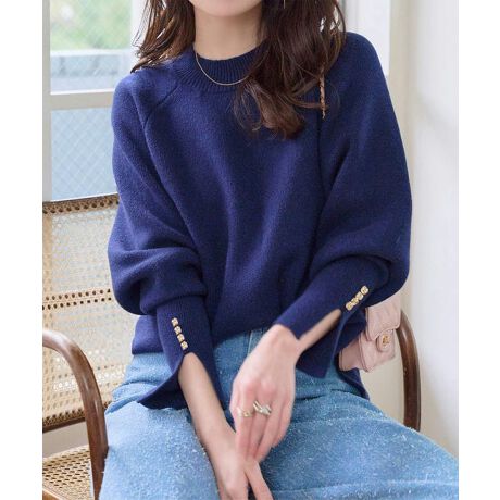 袖元の上品な立体ゴールドボタン×スリットが目を惹く、大人の上品ニット。