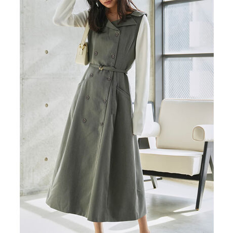 [型番:E3563]着こなし幅広がるジレワンピース。レディにロングワンピースとしてもモードな雰囲気にジレとして羽織りでも着回せる一着。メリハリをプラスし、シルエット変化も楽しめるウエストベルト付きです◎【素材・サイズ感】すとんと落ち感のあるツイル素材。すっきりとしたシャープさがスマートな印象を与え、一枚ではもちろんシアートップスやタートル合わせなどインナー次第でロングシーズン、スタイリングを楽しめます◎#コウベレタス