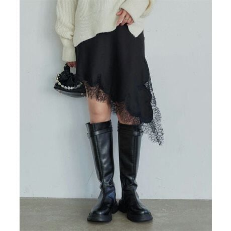 繊細な裾レースにアシメデザインがモードで印象的な一枚。
