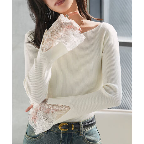 繊細なレースをのぞかせ、さりげない肌見せが印象的な一枚。