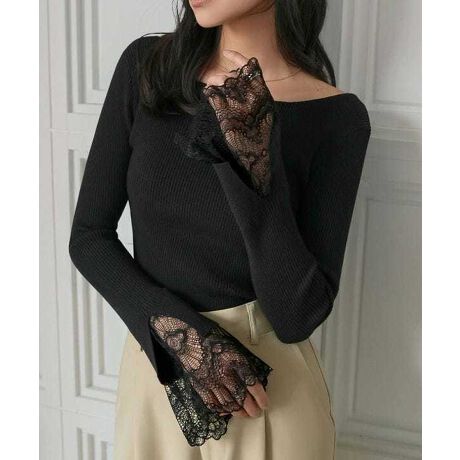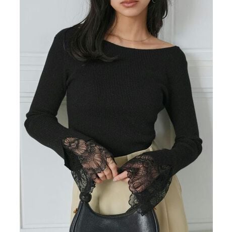 繊細なレースをのぞかせ、さりげない肌見せが印象的な一枚。