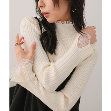 マルイウェブチャネル   /   神戸レタス   /   トップス   /   ニット・セーター   /   袖口レースリブニット [N1326]