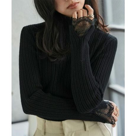 トレンドの大人気レースデザインから、1枚でレイヤード風のデザインが楽しめるレースドッキングニットが登場。