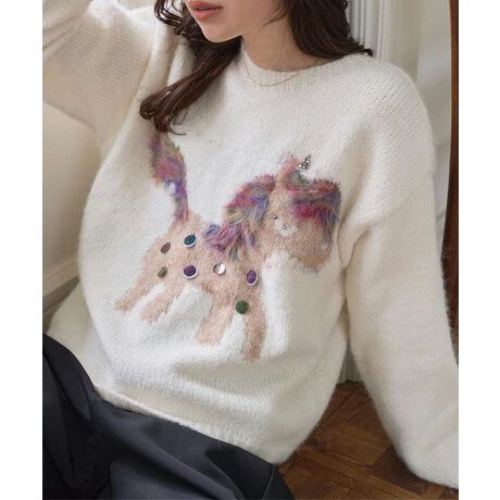 マルイウェブチャネル   /   神戸レタス   /   トップス   /   ニット・セーター   /   祝 午年!ポニー柄jもっちりニット [N1328]