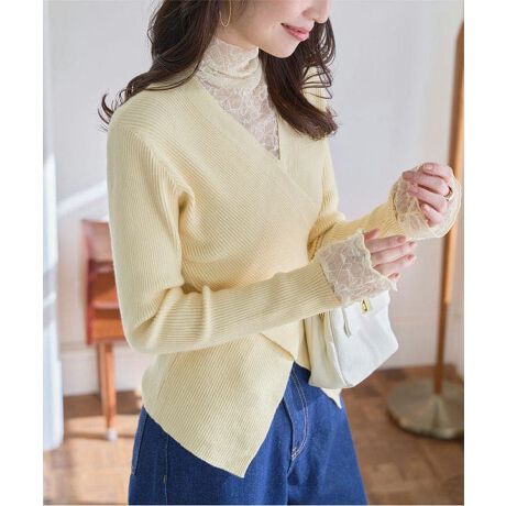 ストレッチ性のあるリブニットと繊細なレース素材の異素材ドッキング。