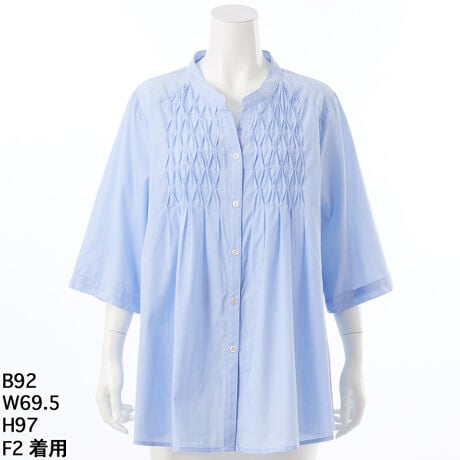 デザイン: スタンドカラー / 変形ピンタック / 5〜7分袖