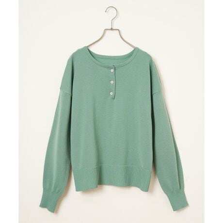 コットンタッチのドライな風合いが心地よい、ハイゲージ編みのヘンリーニット。